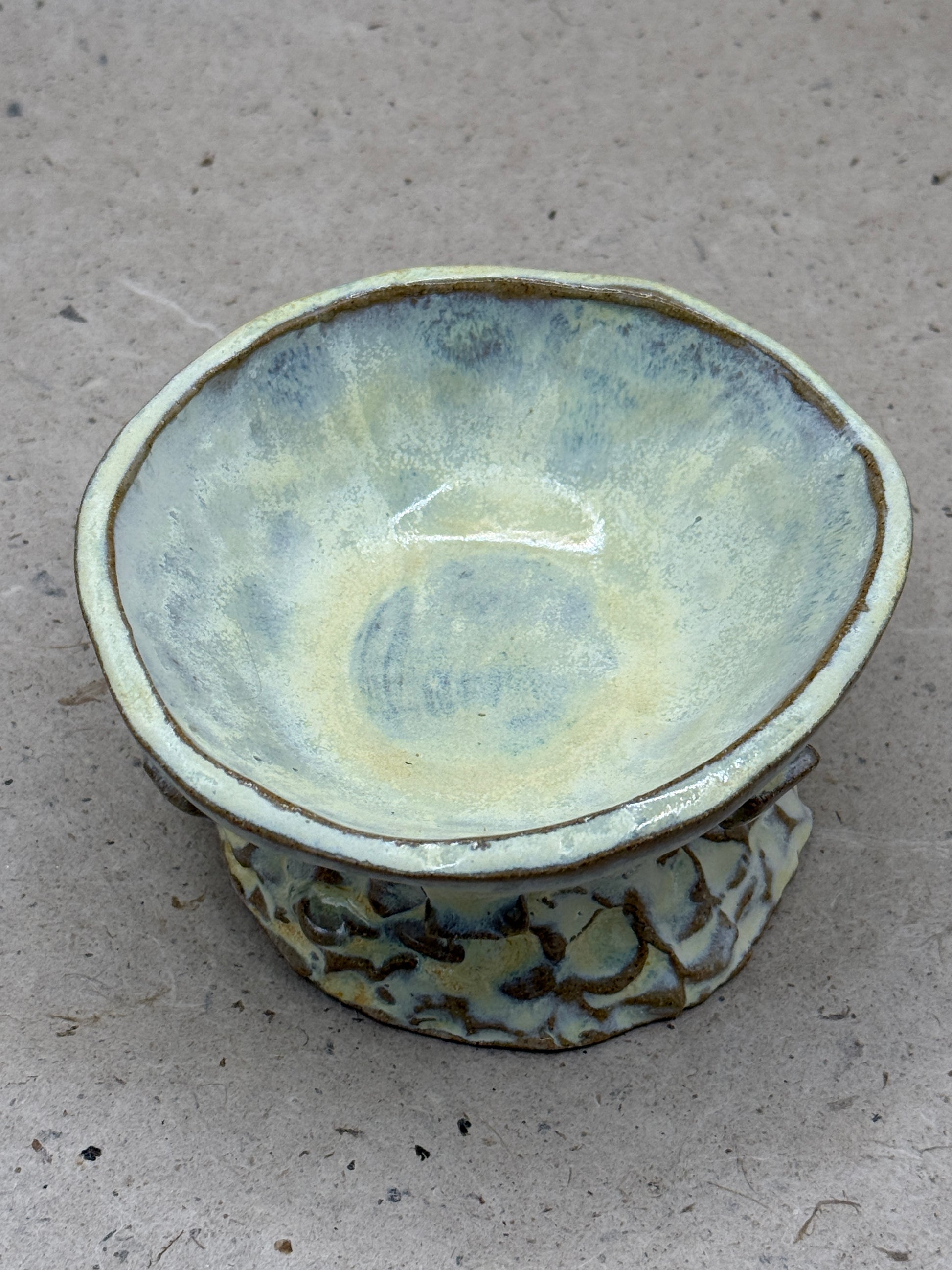 Perfect as a small serving dish, jewelry catchall, or decorative accent, this bowl brings warmth and artistry to any setting. Its sculptural base and subtle variations in glaze reflect Bunzy’s signature style—playful, authentic, and inspired by the beauty of imperfection.